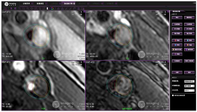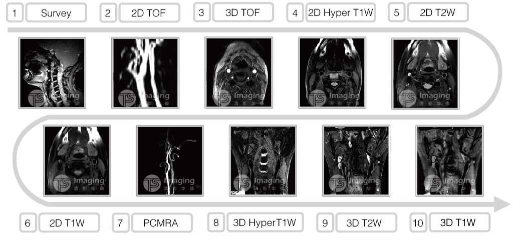 不仅提供用于进行斑块成分的定性与定量分析轴位成像序列,还包括颈动脉、椎动脉的冠状位大范围的3D成像序列。